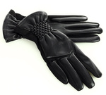 Stylowe rękawiczki damskie skóra eco na ściagaczu - MARCO MAZZINI - czarne