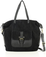 Duża czarna shopperka zamszowa skórzana z kieszenią – MARCO MAZZINI