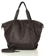 Ciemnobrązowa torebka pleciona shopper A4 z miękkiej włoskiej skóry Marco Mazzini