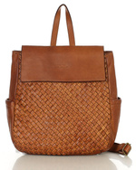 Plecak damski skórzany pleciony z kieszeniami - MARCO MAZZINI brąz camel
