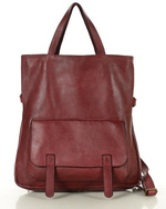 Skórzana torebka plecak z kieszenią z przodu - MARCO MAZZINI bordowa czerwona