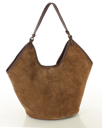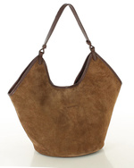 Duża torba zamszowa shopper skórzany z kieszenią - MARCO MAZZINI brązowy