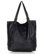 Miękka torba typu shopper skórzana na ramię - MARCO MAZZINI - czarny