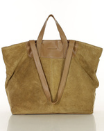 Duża torba zamszowa skórzana podwójne rączki - MARCO MAZZINI beżowa