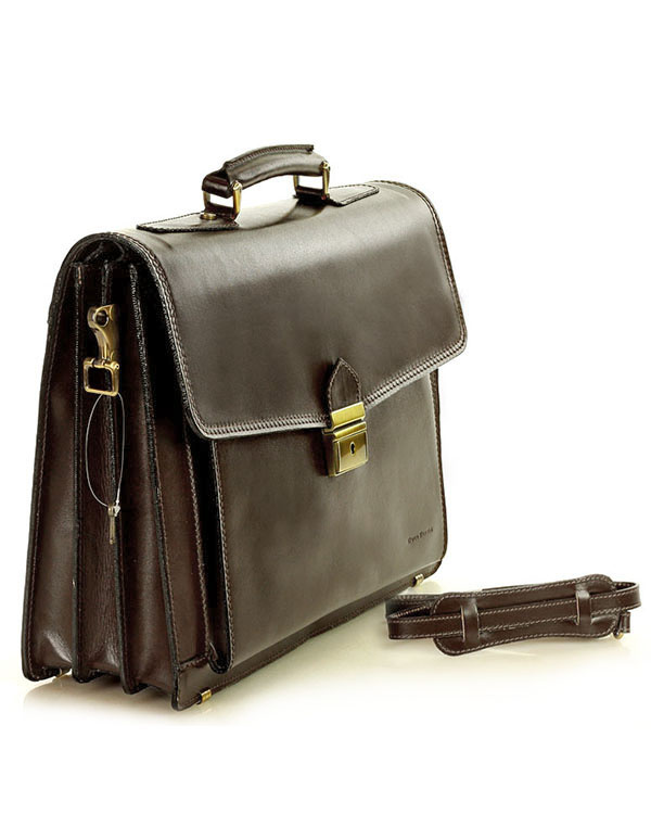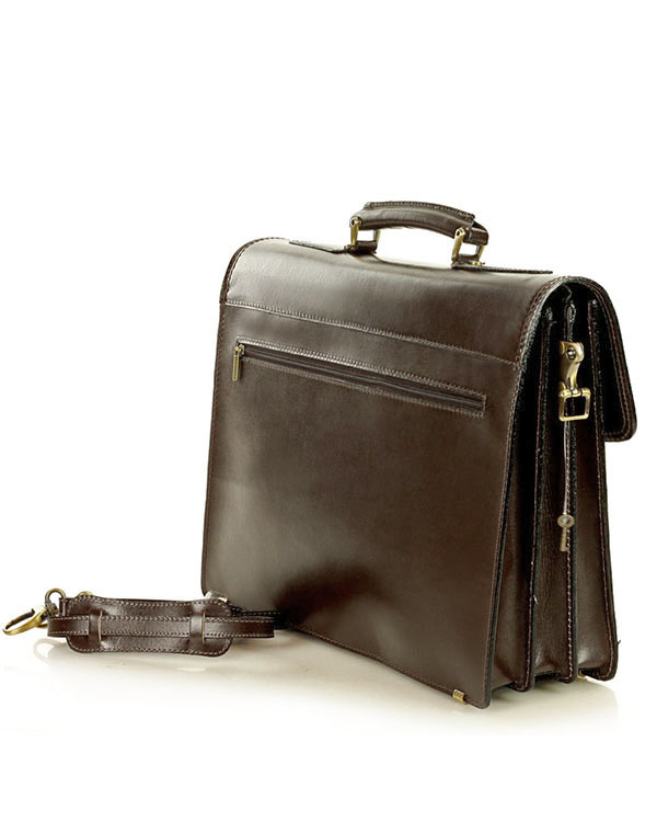 Teczka męska skórzana Classic LORIS to elegancki i funkcjonalny dodatek, który pozwoli mężczyźnie wyróżnić się w biznesowym środowisku. Wykonana z wysokiej jakości skóry naturalnej licowej. Teczka zachwyca nie tylko swoim wyglądem, ale również trwałością i wygodą w użytkowaniu. Aktówka męska to doskonałe rozwiązanie dla mężczyzn, którzy cenią sobie dobry styl i praktyczne rozwiązania. Dzięki licznej ilości przegródek, kieszeni i paskowi na ramię, teczka pozwala na sprawną organizację dokumentów, laptopa, tabletu czy innych niezbędnych akcesoriów. Teczka męska skórzana posiada pojemne trzy komory, co zapewnia większy porządek i lepszą organizację. Środkowa komora zamykana na suwak jest dedykowana do noszenia laptopa. Ścianki zostały specjalnie wyłożone gąbką, aby zabezpieczać przed uszkodzeniem. Z przodu modelu, pod klapą, praktyczna, otwarta kieszeń na terminarz oraz organizer na długopisy, wizytówki. Z tyłu modelu podręczna, zamykana na suwak kieszonka. Solidny zamek zamykający, odporny na zarysowania. Raczka oraz mocowania do podpięcia długiego paska dodatkowo wzmocnione. Pas nośny na ramię na ramię pozwala na większą swobodę ruchów oraz komfort, dzięki równomiernemu rozłożeniu ciężaru. Stopki zabezpieczające dno teczki przed otarciem.