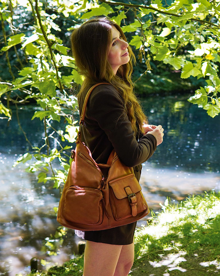 Torebka skórzany worek vintage w kolorze brąz camel wykonana została z jakościowej skóry naturalnej old look (old school). Jest to solidna skóra bydlęca o gładkiej powierzchni. Charakterystyczna dla tego typu skóry jest duża wytrzymałość na obciążenie. Torebka jest ręcznie szyta, a następnie W CAŁOŚCI farbowana. Dzięki procesom postarzania, uszlachetniania i zmiękczania skóry jest miękka i aksamitna w dotyku. Barwniki użyte do farbowania skóry to wyłącznie barwniki roślinne, nieuczulające i całkiem bezpieczne. Wybierając produkty dobrej jakości masz pewność, że posłużą Ci przez wiele lat.