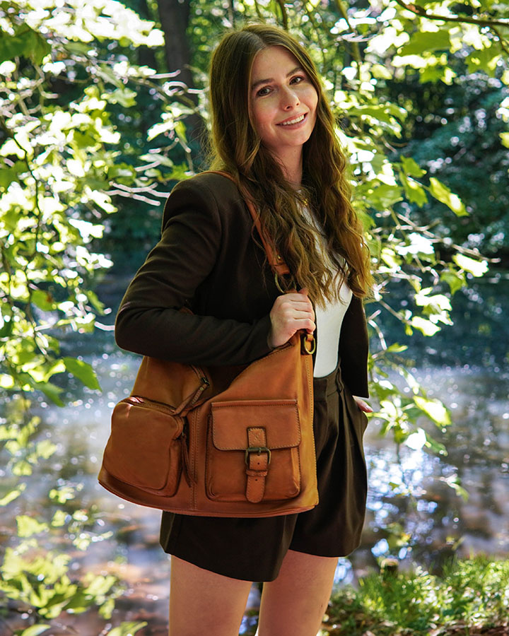 Włoscy projektanci znają sekret idealnej torebki! Skórzana torba typu worek na ramię z dużą ilością kieszonek. została zaprojektowana z myślą o Kobietach lubiących ponadczasowy styl a’la moda italiana i wygodę na każdy dzień tygodnia. Organizacja przestrzeni w tym modelu zasługuje na 5+. Z przodu torebki znajdują się aż 4 kieszonki, w których swobodnie rozmieścisz wszystkie drobiazgi, które lubisz mieć zawsze pod ręką. W środku znajdziesz kolejne 3 kieszenie, w tym jedną na zamek. Torebka mieści format A4, sprawdzi się również w roli torebki do pracy. W zestawie dołączony długi pasek, po którego podpięciu torebkę możesz nosić w formie sportowej listonoszki. Torebki z kolekcji SLOW BAG Runway to funkcjonalne torby na co dzień, które dotrzymają Ci kroku!
