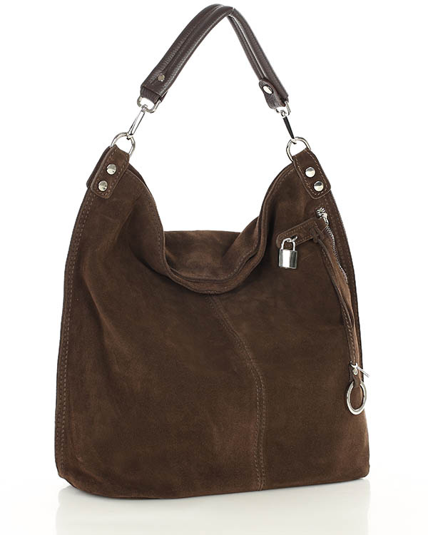 Torebka skórzana ponadczasowy design worek na ramię XL hobo leather bag - MARCO MAZZINI nubuk brąz caffe