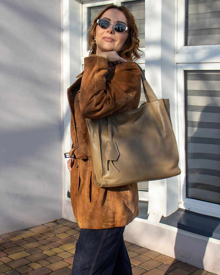 Eleganckie torby na zakupy ze skóry są niezbędnym elementem w szafie każdej modnej kobiety. Dzięki nim możesz w łatwy sposób przenosić swoje codzienne zakupy, a jednocześnie wyglądać stylowo i elegancko. W naszym sklepie internetowym znajdziesz wiele modnych torebek na zakupy, ale ta elegancka torba na zakupy wykonana z beżowej skóry w wyjątkowym odcieniu taupe to zdecydowanie must have w kolekcji każdej kobiety.