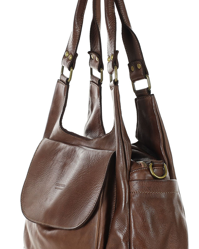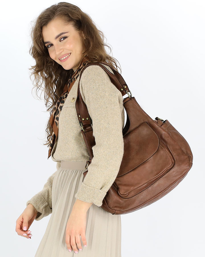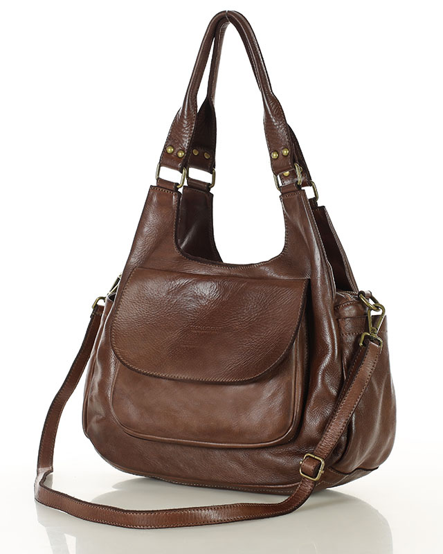 Włoska torebka skórzana z kieszenią z przodu retro bag handmade - MARCO MAZZINI czekoladowy brąz