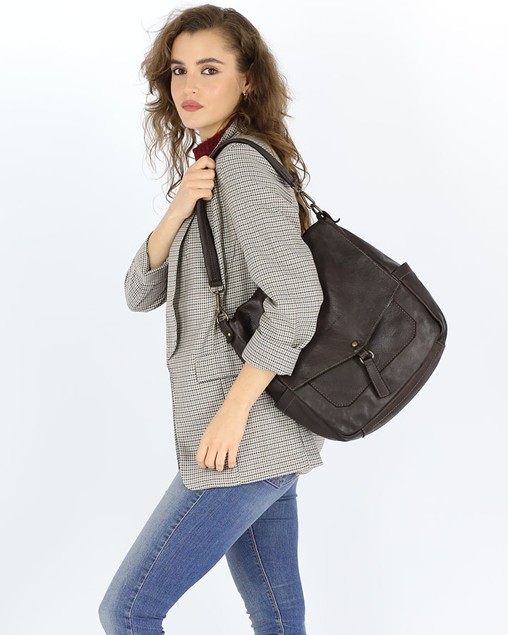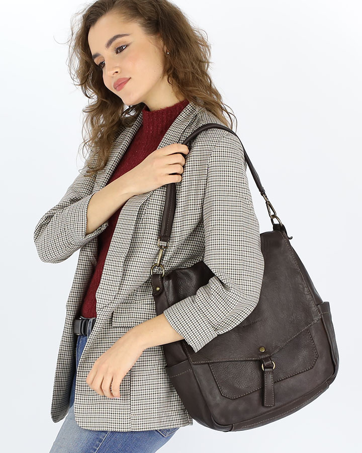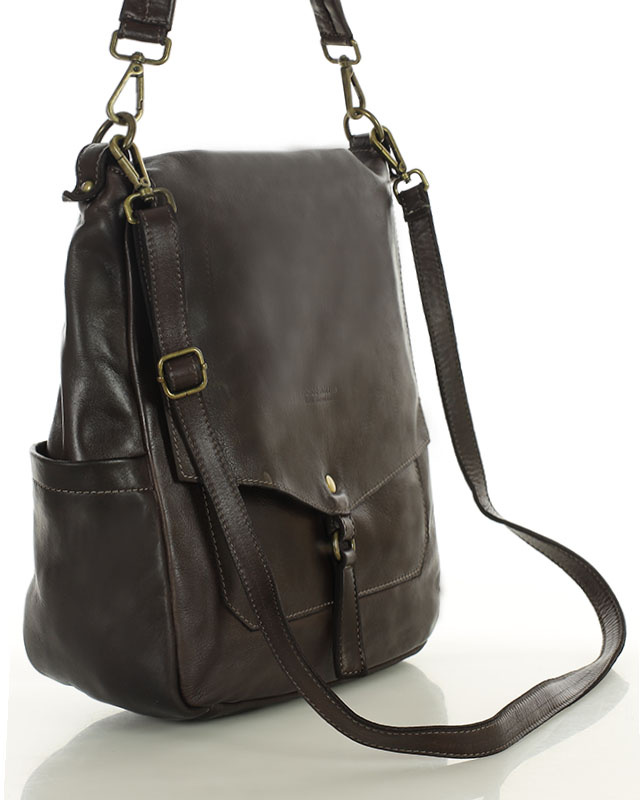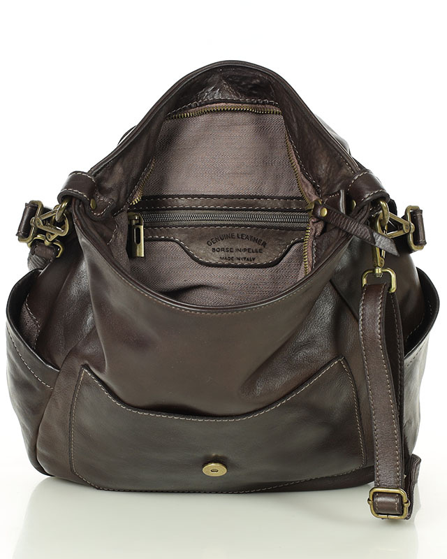 Torebka damska na ramię Marco Mazzini vintage w kolorze brązowym wykonana została z naturalnej skóry licowej, bydlęcej. Jest to skóra bardzo solidna, wytrzymała na obciążenie oraz wyjątkowo miękka w dotyku. Torebka jest ręcznie szyta i zaplatana, a następnie W CAŁOŚCI poddawana procesom farbowania, starzenia i uszlachetniania. Barwniki użyte do farbowania skóry to wyłącznie barwniki roślinne, nieuczulające i bezpieczne. Skóra naturalna jest materiałem wyjątkowym! Ta wykorzystywana do produkcji toreb Marco Mazzini jest odzyskiwana z przemysłu spożywczego zgodnie z zasadami zero waste.