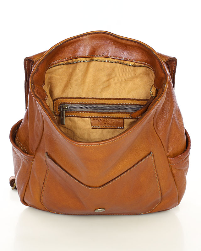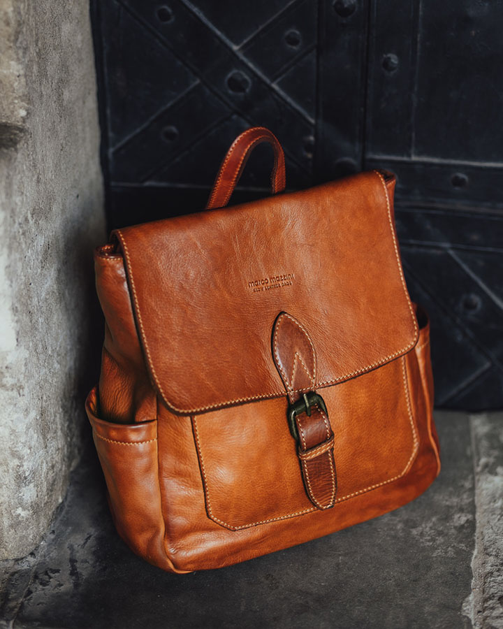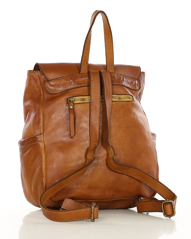 Plecak skórzany handmade z kieszeniami - MARCO MAZZINI brąz camel