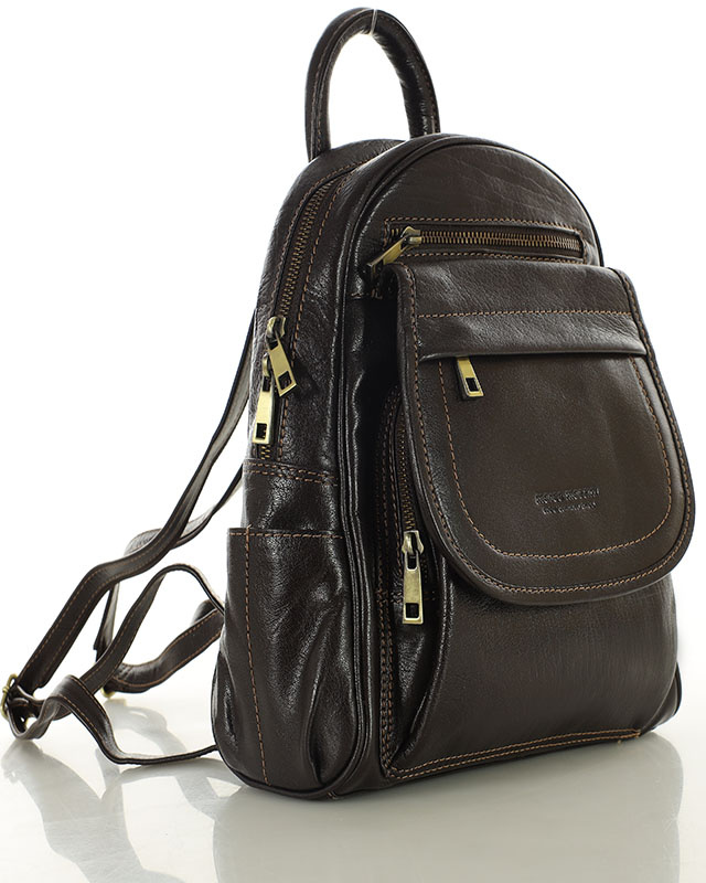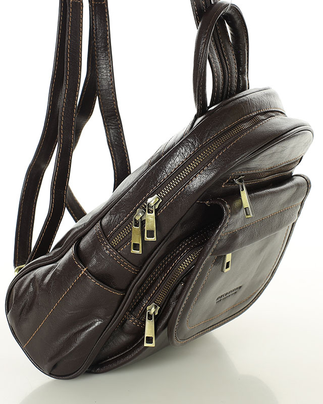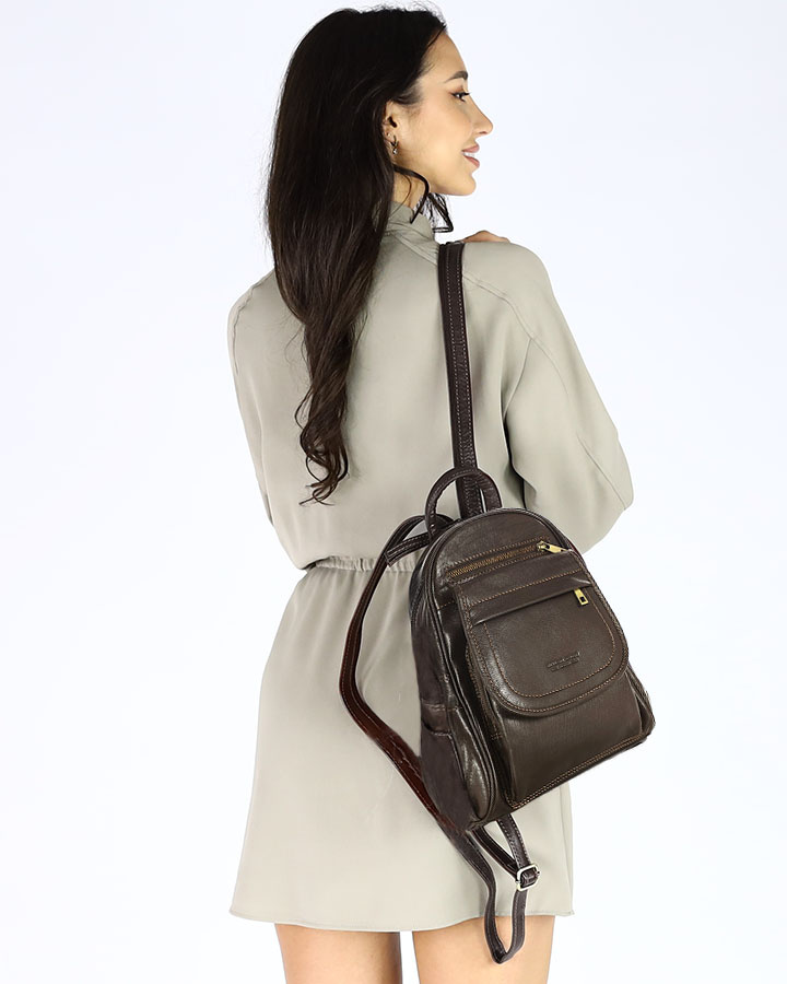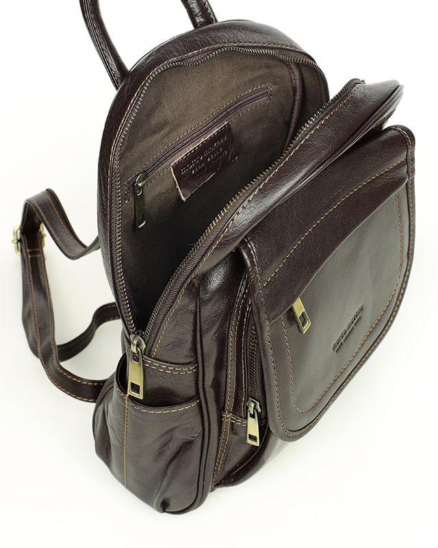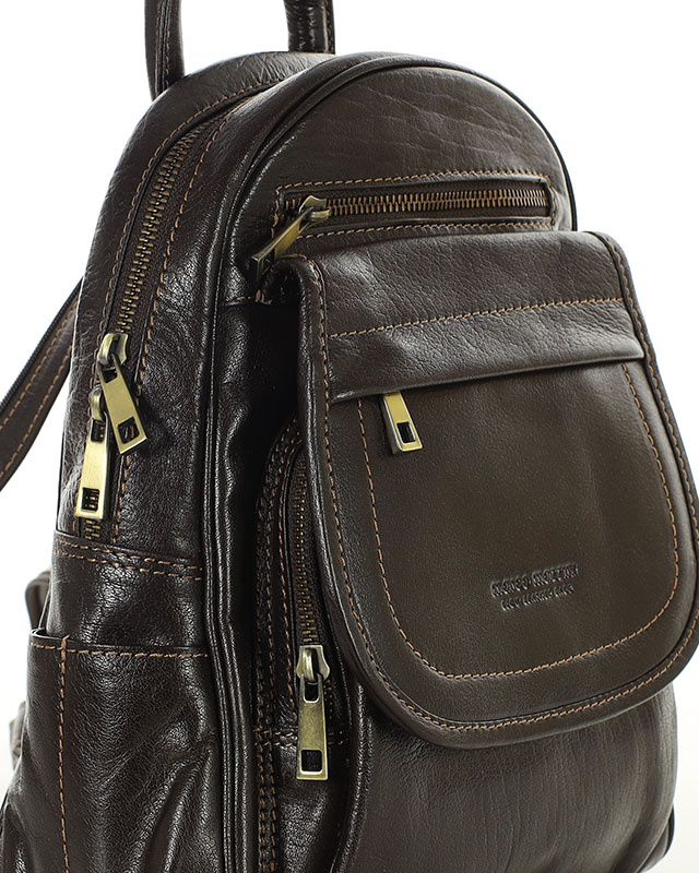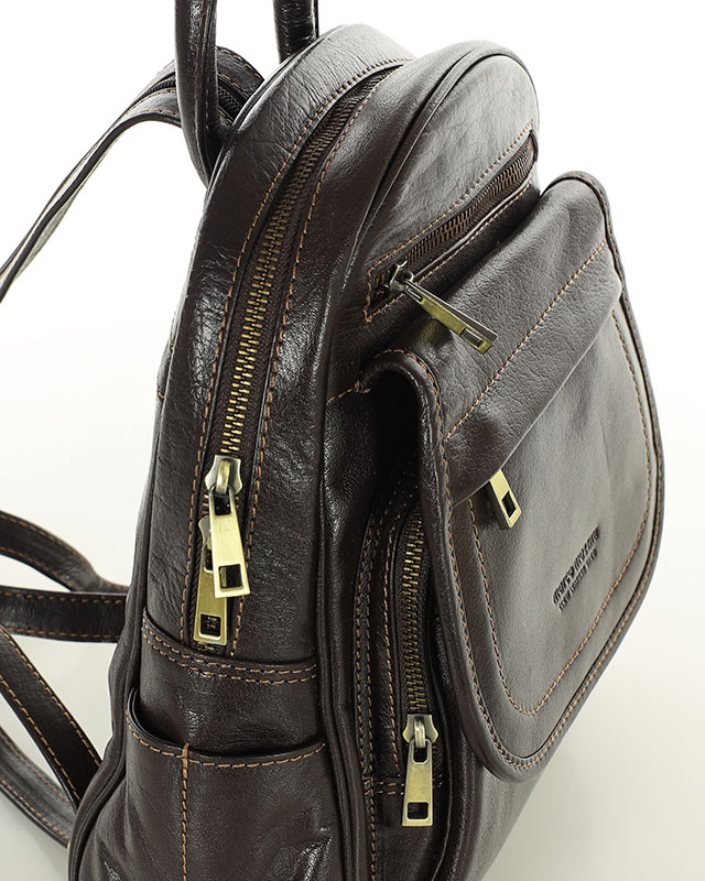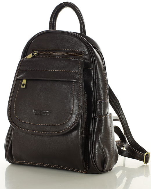 Plecak skórzany damski perfekcyjna organizacja - MARCO MAZZINI brąz