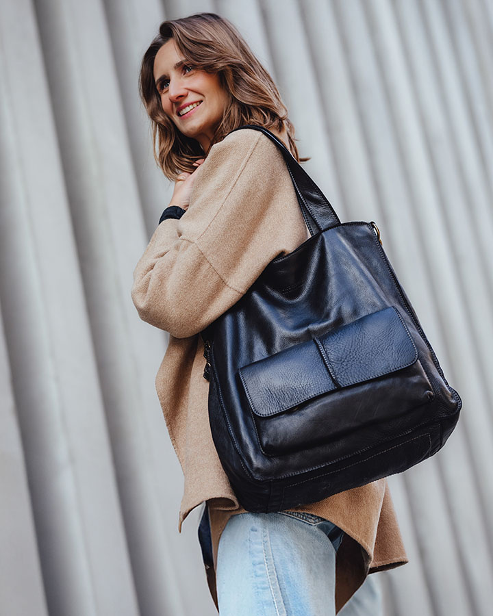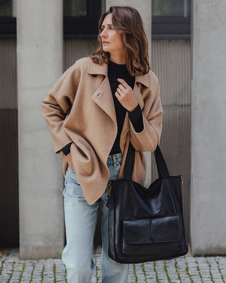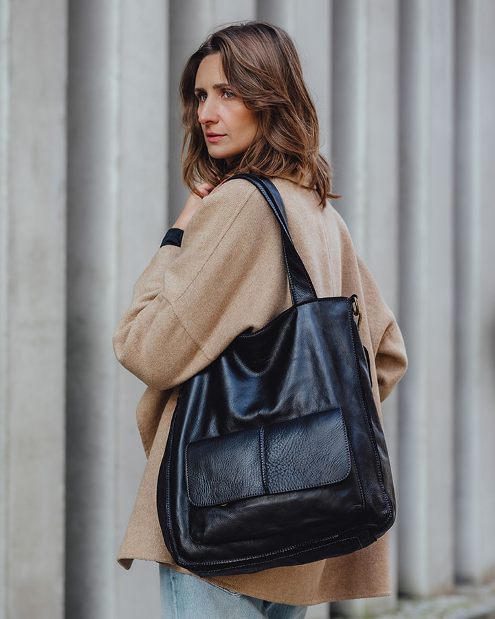 Podkreśl swój wyjątkowy styl dzięki torebce damskiej shopper Marco Mazzini. Ta wysokogatunkowa torba skórzana nie tylko zachwyca swoim designem, ale także spełnia potrzeby współczesnej kobiety, będąc idealnym wyborem na torebkę do pracy. Torebka wykonana jest z naturalnej skóry najwyższej jakości, gwarantując trwałość i elegancję. Idealna na co dzień, doskonale sprawdzi się również jako torba na laptopa i dokumenty A4. Klasyczny, a jednocześnie nowoczesny design sprawia, że torebka damska shopper doskonale komponuje się z miejskim stylem życia, zarówno podczas zakupów, jak i w biurze. Praktyczna duża kieszeń z przodu modelu sprawi, że telefon, klucze i inne najpotrzebniejsze drobiazgi będą zawsze do dyspozycji na wyciągniecie Twojej dłoni. Kieszonkę na zamek znajdziesz również z tyłu modelu. Dostęp do wnętrza torby zamykany jest na zamek błyskawiczny. W środku torby damskiej A4 znajdziesz jedną zamykaną i jedną otwartą kieszonkę. Całość wykończona naturalną, bawełnianą podszewką. W zestawie dołączony długi pasek. Kolekcja SLOW BAG Runway to eleganckie torebki do pracy, które dorównają szybkiemu tempu życia, jakie prowadzisz. Jeśli szukasz multi-funkcjonalnej, komfortowej i stylowej torebki skórzanej A4 to ten model przypadnie Ci do gustu.