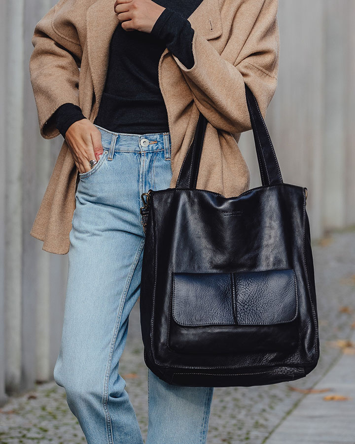Torebka damska A4 stworzona w prostej i minimalistycznej stylistyce to inwestycja na wiele lat. Torebka do pracy wykonana z wysokiej jakości skóry naturalnej licowej. Jest to skóra bydlęca o gładkiej powierzchni. Charakterystyczna dla tego typu skóry jest duża wytrzymałość na obciążenie. Torebka jest ręcznie szyta, a następnie W CAŁOŚCI farbowana. Dzięki procesom postarzania, uszlachetniania i zmiękczania skóry jest miękka i aksamitna w dotyku. Torebka vintage MARCO MAZZINI została zaprojektowana z myślą o potrzebach kobiet i jako torebka na co dzień oferuje odpowiednią przestrzeń na wszystkie niezbędne drobiazgi. Z pewnością stanie się Twoim niezawodnym towarzyszem zarówno na co dzień, jak i odświętnych okazjach. Dzięki starannej pracy rzemieślników, którzy tworzą ją z pasją, nasza torebka damska shopperka stanowi nie tylko modny dodatek, ale także niezwykle praktyczny. Zaufaj tradycji i jakości - wybierz naszą skórzaną shopperkę i poczuj się wyjątkowo, każdego dnia.