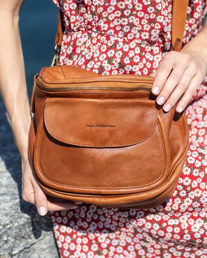 Skórzana listonoszka na szerokim pasku Marco Mazzini to kwintesencja wygody i dobrego stylu. Brązowa półokrągła torebka zachwyca nie tylko nietuzinkowym wyglądem, ale również doskonałą funkcjonalnością. Pojemna torebka na szerokim pasku to wygodna propozycja modnej torebki na co dzień. Wykonana z najwyższej jakości skóry naturalnej, gwarantuje trwałość i wyrafinowany wygląd przez wiele sezonów.
