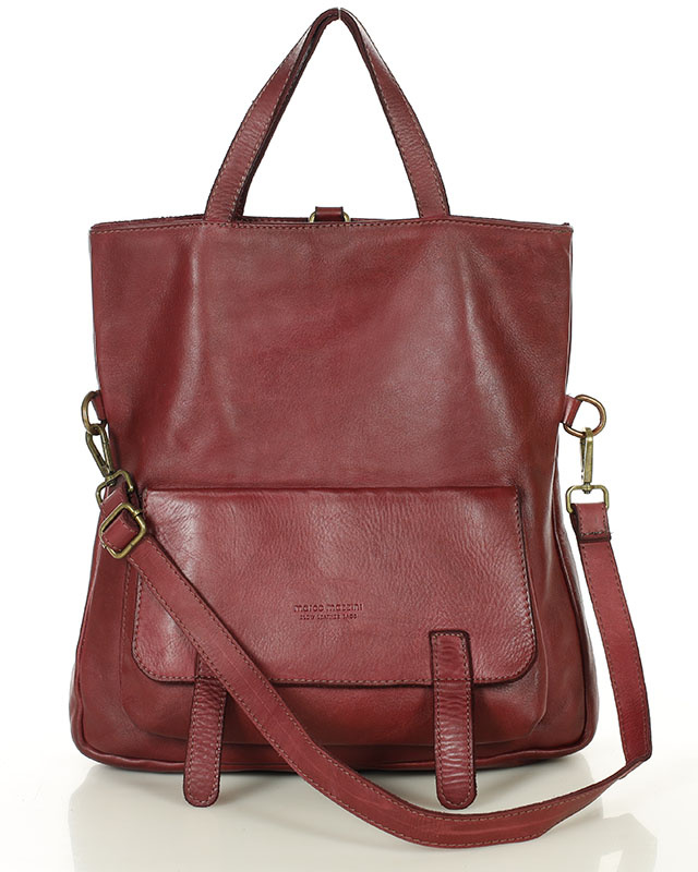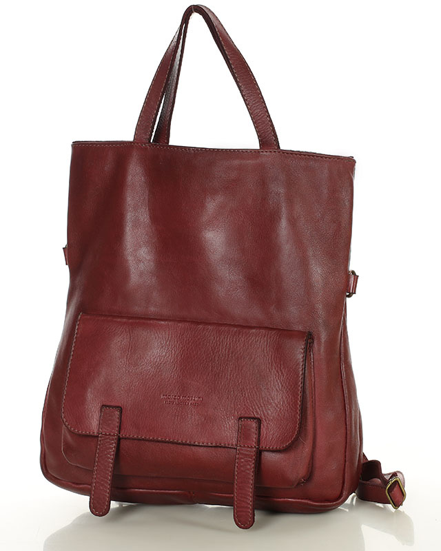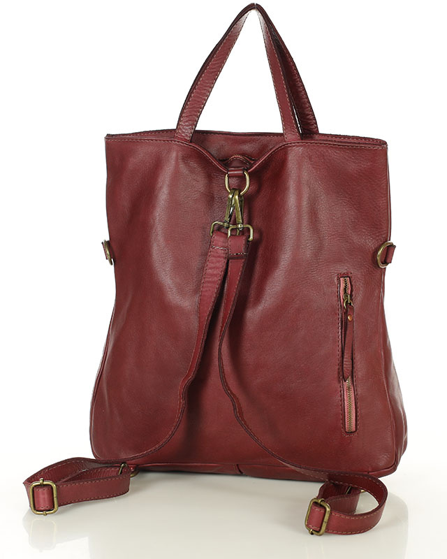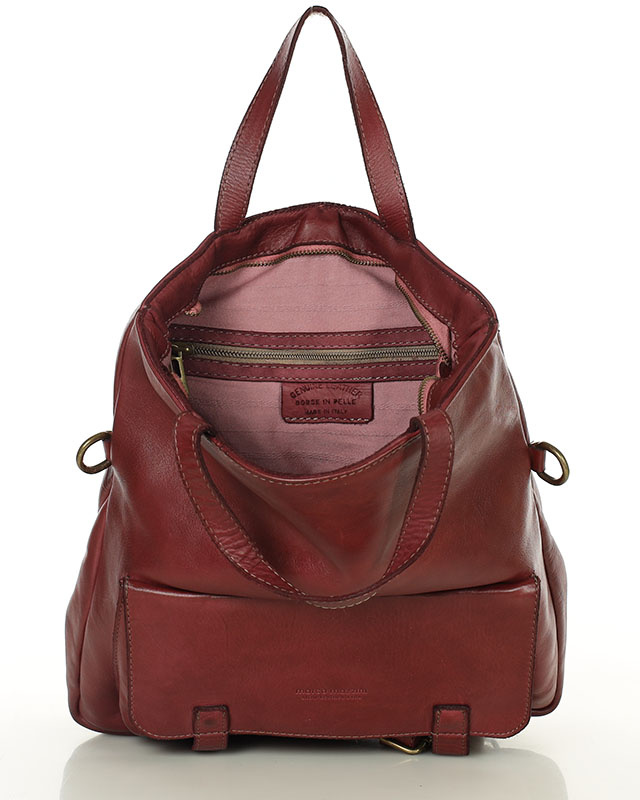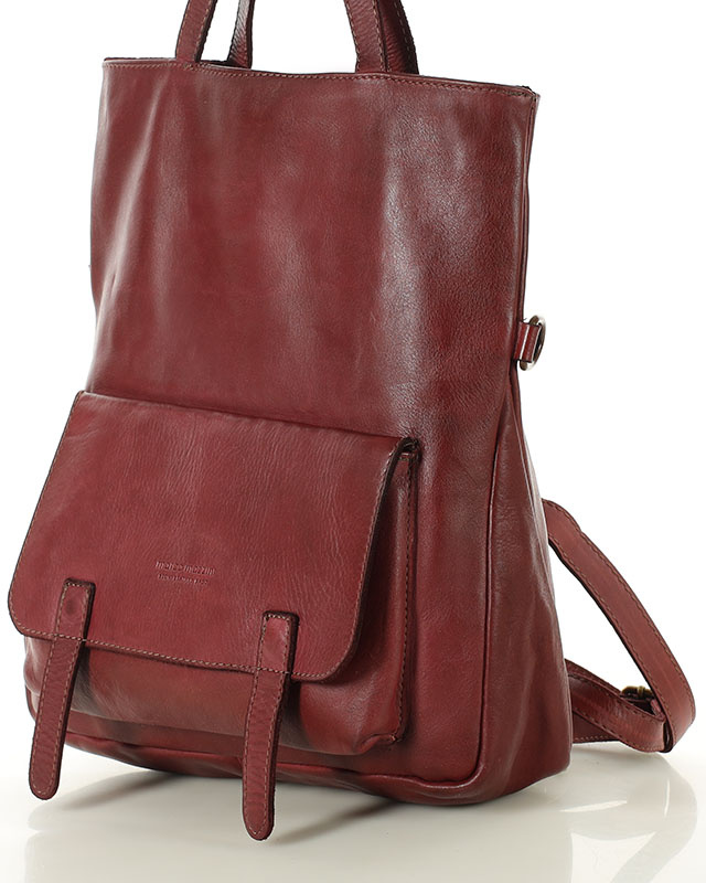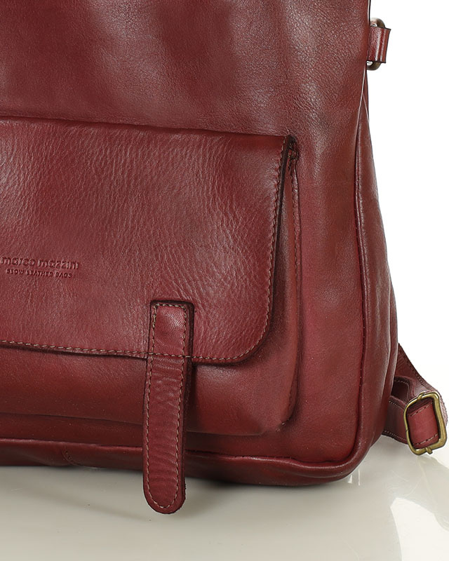 Skórzana torebka plecak z kieszenią z przodu - MARCO MAZZINI bordowa czerwona