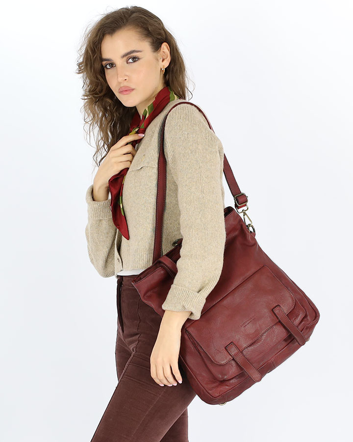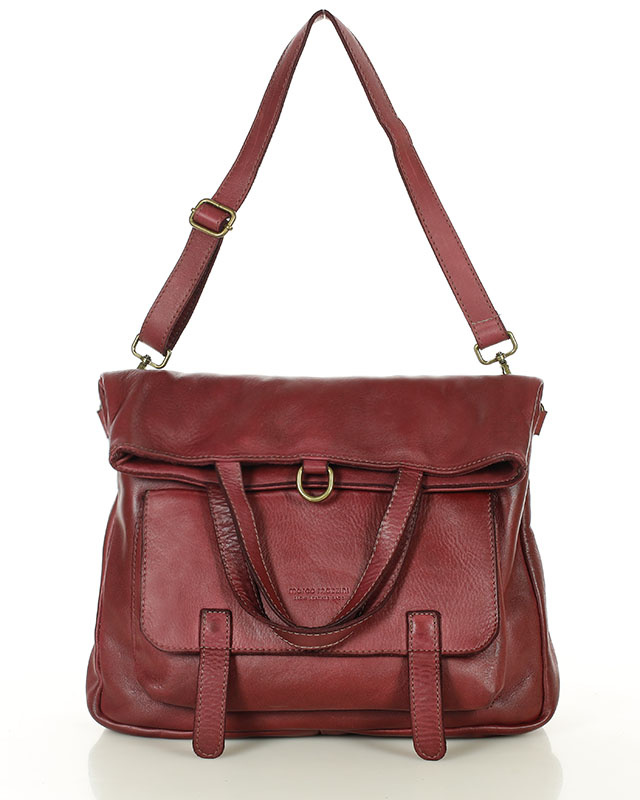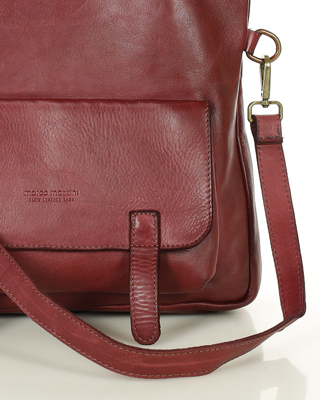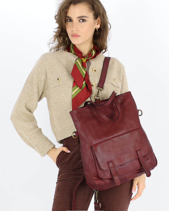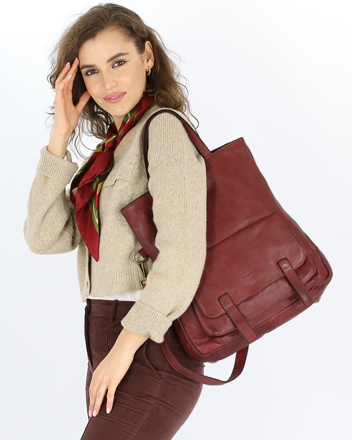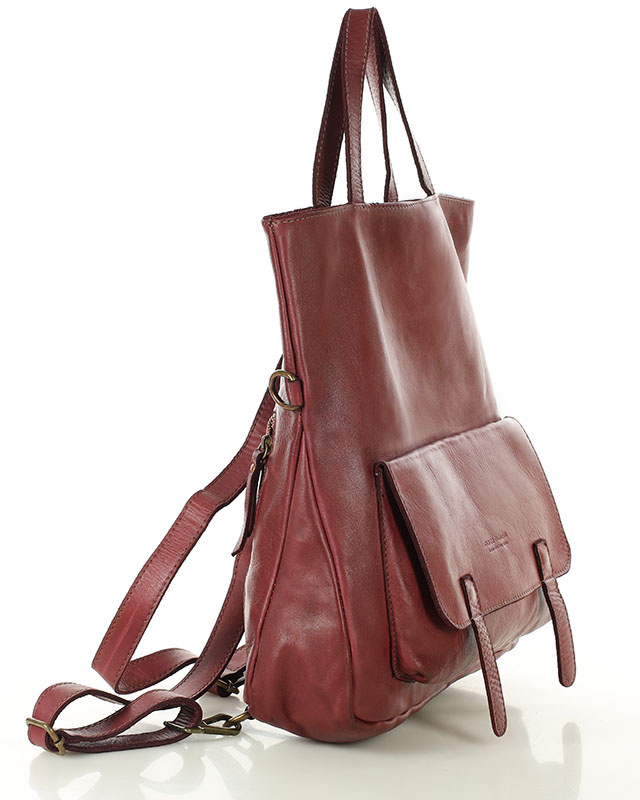 Skórzana torebka plecak z kieszenią z przodu - MARCO MAZZINI bordowa czerwona