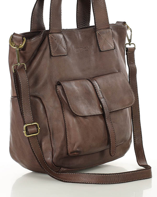 Ta torebka miejska skórzana została wykonana z wysokogatunkowej, miękkiej skóry naturalnej, która zapewnia wyjątkową wygodę i elastyczność w użytkowaniu. Jest to skóra bardzo solidna, wytrzymała na obciążenie oraz wyjątkowo miękka w dotyku. Torebka jest ręcznie szyta, a następnie W CAŁOŚCI poddawana procesom farbowania, starzenia i uszlachetniania. Skóra naturalna jest materiałem wyjątkowym! Ta wykorzystywana do produkcji toreb Marco Mazzini jest odzyskiwana z przemysłu spożywczego zgodnie z zasadami zero waste.