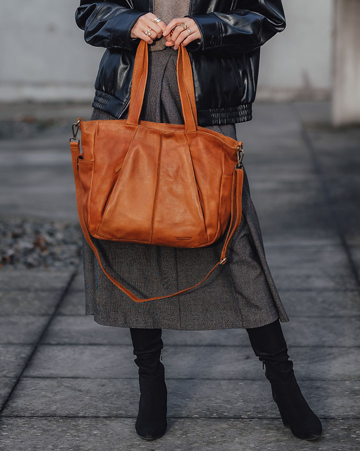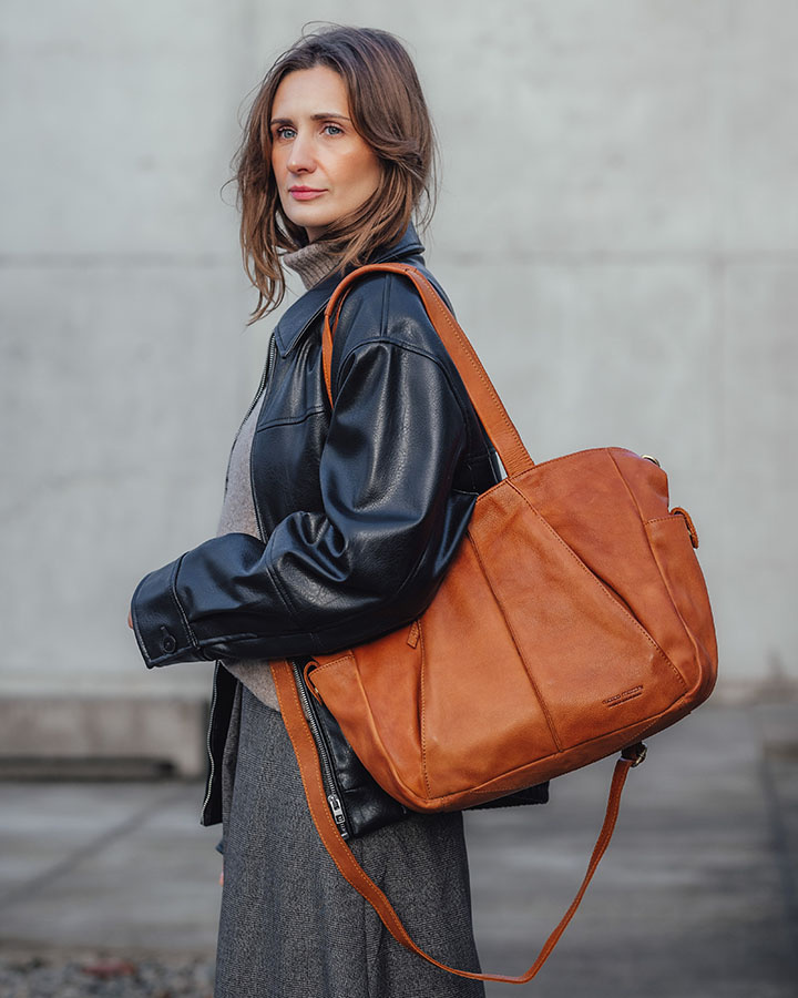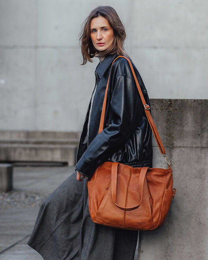 Zapomnij o tym, że duża, skórzana torebka musi swoje ważyć... Ten model torebki damskiej na ramię wykonany jest z jakościowej miękkiej skóry licowej, w rozmiarze mieszczącym format A4, a przy tym jest lekki i waży tylko 0,83 kg. Najlepsza skóra naturalna i kilka przemyślanych detali nadały naszej torbie typu shopper indywidualnego charakteru. Charakterystyczne dla wyrobów rzemieślniczych trwałość i autentyczność sprawiają, że torebka emanuje niepowtarzalnym urokiem i wyjątkowym stylem vintage. Każdy szczegół jest starannie wykonany, podkreślając unikalność produktu i zapewniając nie tylko praktyczne zastosowanie, ale również estetyczną wartość. Wnosząc do Twojej garderoby nutę rzemieślniczej precyzji.