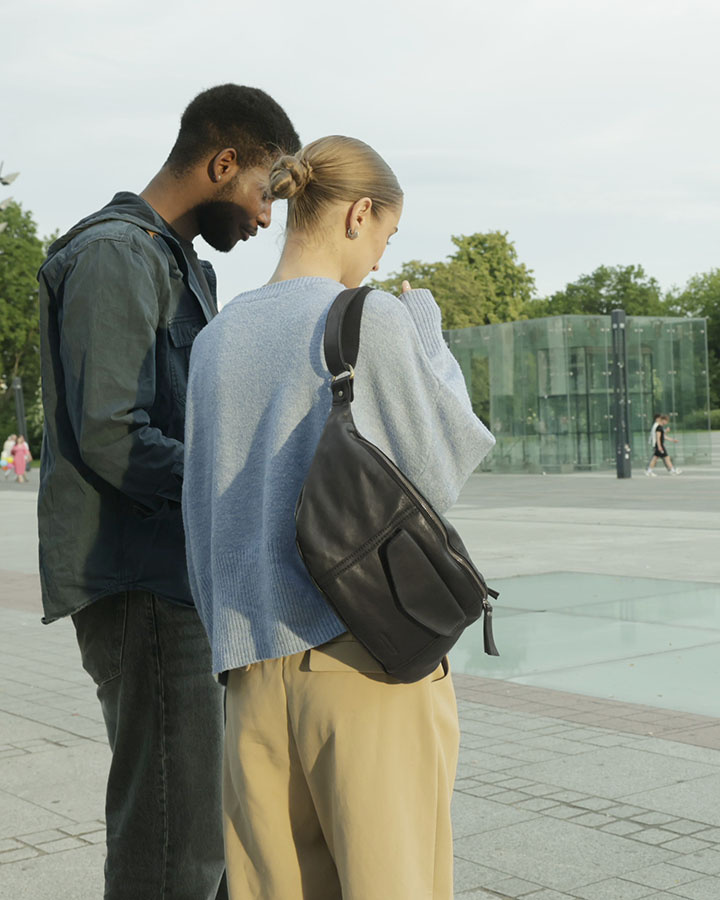 Nasza czarna torebka przez ramię jest wykonana z wyjątkowo trwałego materiału, jakim jest skóra naturalna, która jest przyjemnie miękka w dotyku. Jej klasyczny fason półksiężyca pasuje do różnych stylizacji, więc z łatwością dobierzesz ją do eleganckiego stroju biznesowego, sportowego looku oraz wygodnego, casualowego outfitu.