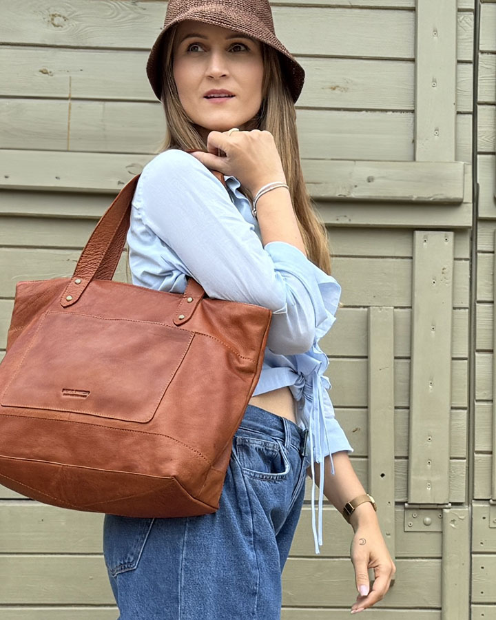 Skórzana shopperka mieszcząca format A4 – Zabierz ją do pracy i na spotkanie