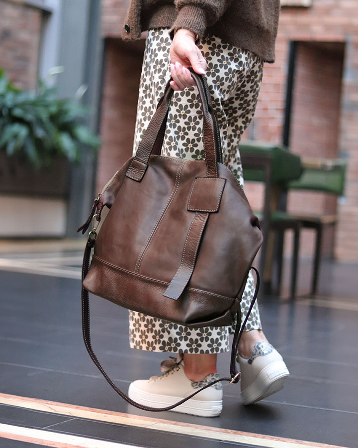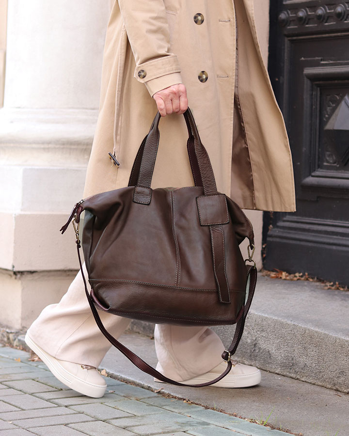 Duża torba shopper skórzana ciemnobrązowa – Pojemność i włoski styl na co dzień