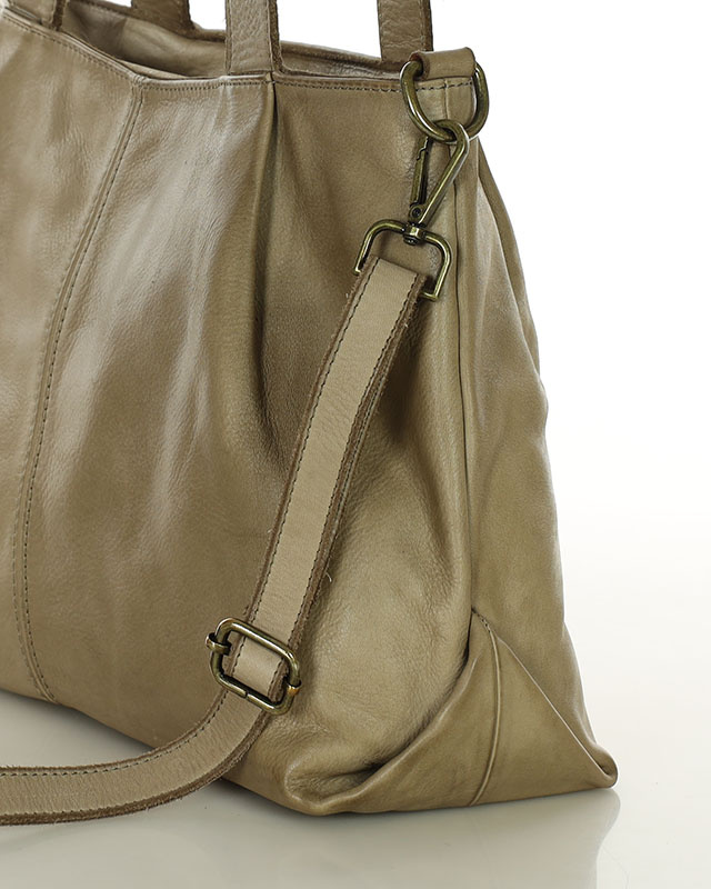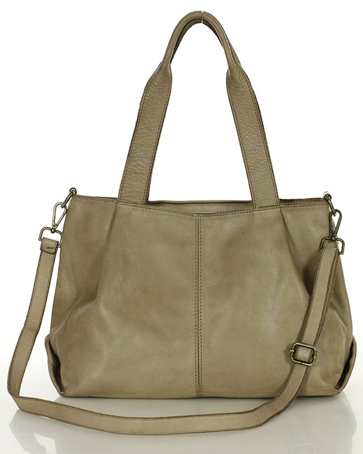 Torebka kuferek skórzana na ramię z miękkiej skóry MARCO MAZZINI beżowa taupe