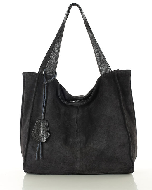 Czarna torba zamszowa ze skóry typu shopper - MARCO MAZZINI