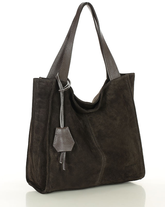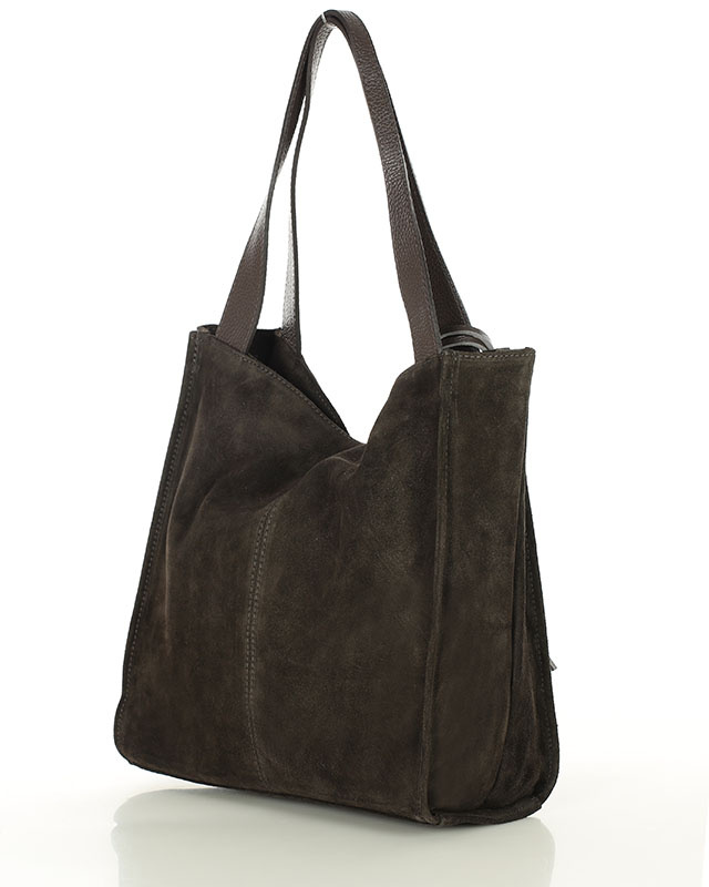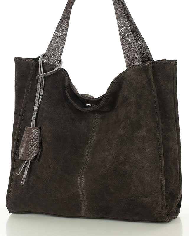 Ciemnobrązowa torba zamszowa ze skóry typu shopper - MARCO MAZZINI