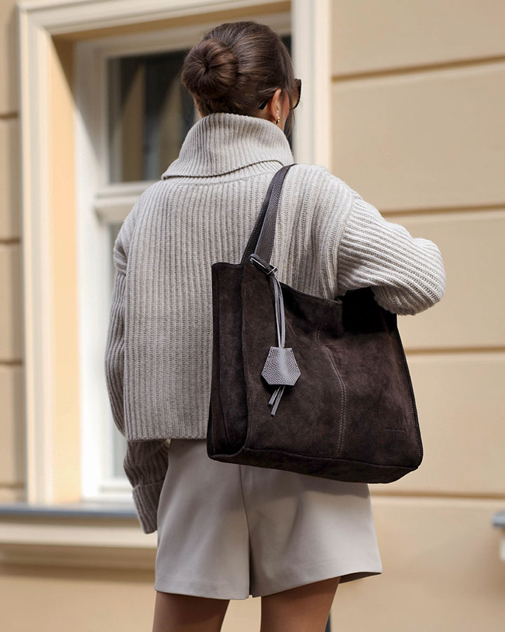 Ciemnobrązowa torebka zamszowa shopper bag – Klasyka zawsze wygrywa!