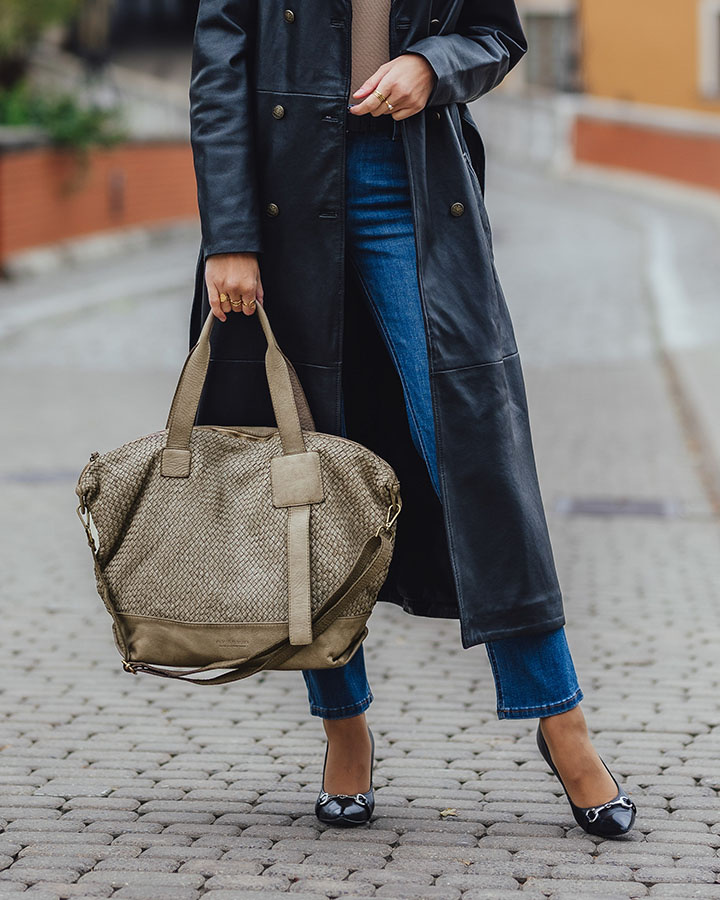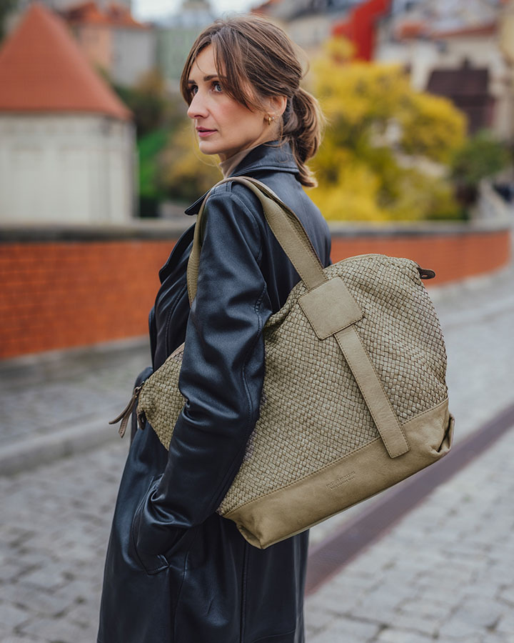 Duża torba shopper z plecionej skóry naturalnej – Funkcjonalność na co dzień