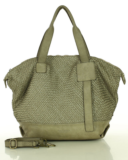 Beżowa torebka pleciona shopper A4 z miękkiej włoskiej skóry Marco Mazzini