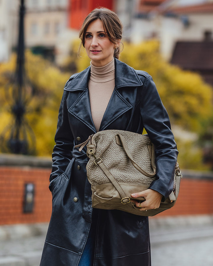 Ten model torebki łączy ponadczasowy design z funkcjonalnością. Pojemne wnętrze mieści dokumenty w formacie A4, laptopa, kosmetyczkę i inne niezbędne akcesoria, dzięki czemu ta beżowa skórzana torba doskonale sprawdzi się zarówno do biura, jak i na co dzień. Pleciona struktura nie tylko dodaje uroku, ale również zwiększa trwałość skóry, zapewniając wyjątkową odporność na zarysowania i intensywne użytkowanie.