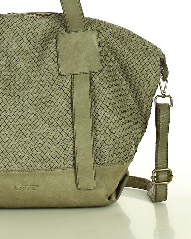 Torebka została uszyta we Włoszech z najwyższej jakości, miękkiej skóry naturalnej, ręcznie plecionej z dbałością o każdy detal. Proces plecenia i ręcznego wykańczania skóry sprawia, że każda torba jest unikatowa – niepowtarzalna struktura, wyjątkowa trwałość i styl vintage to cechy, które wyróżniają ten model na tle innych. Wnętrze wykończone bawełnianą podszewką podkreśla jakość wykonania i zapewnia trwałość na lata.