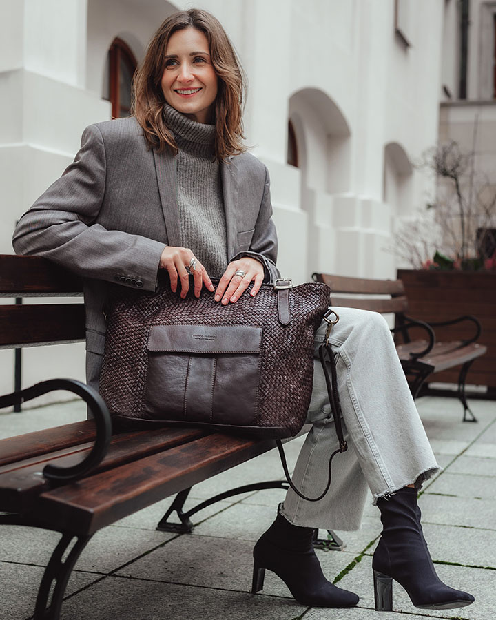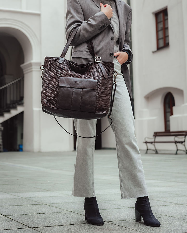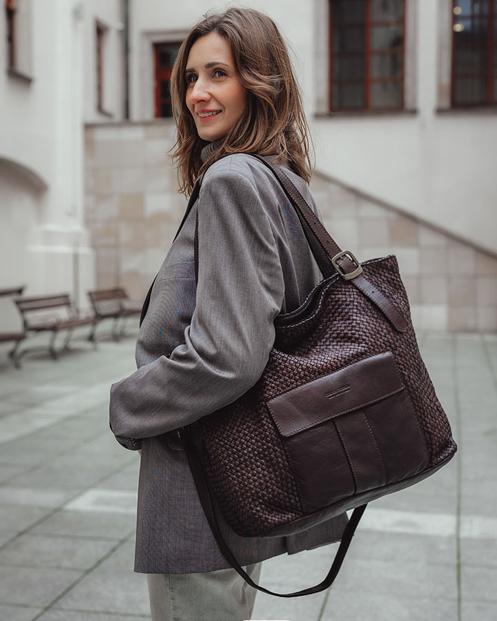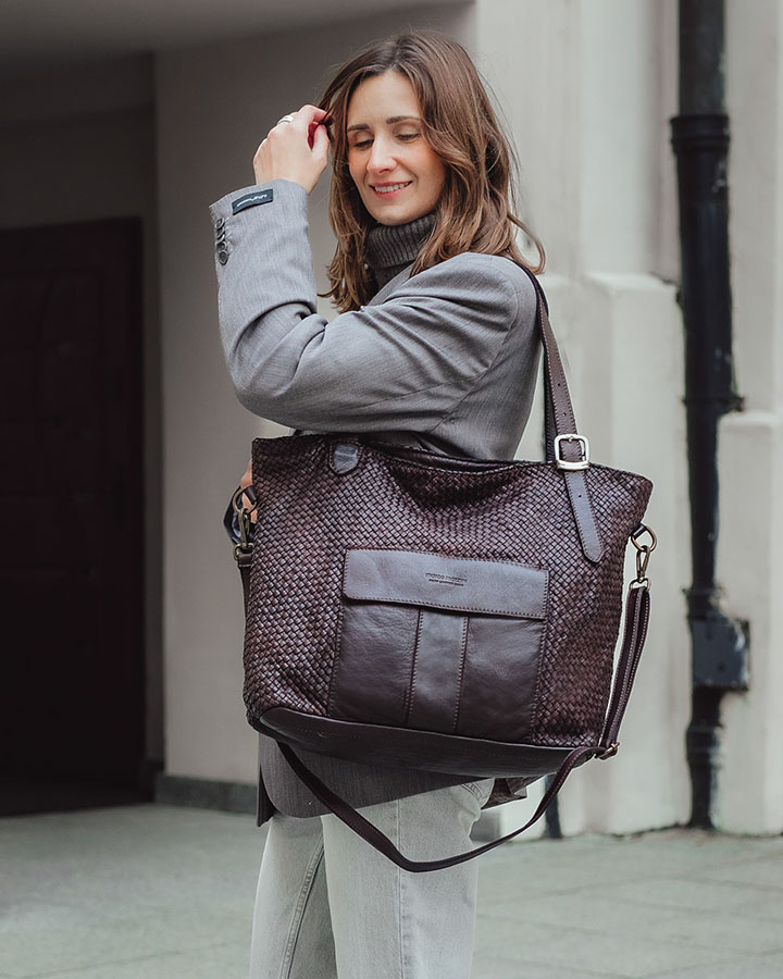 Wygodne rączki oraz dodatkowy, regulowany pasek umożliwią Ci wygodne noszenie naszej skórzanej shopperki na różne sposoby. Duża torba torebka pleciona z wygodnymi uchwytami zapewni Ci komfort noszenia w każdych okolicznościach. Ręcznie plecione skórzane paski podkreślają piękno naturalnej skóry i kunszt rzemieślniczej roboty.