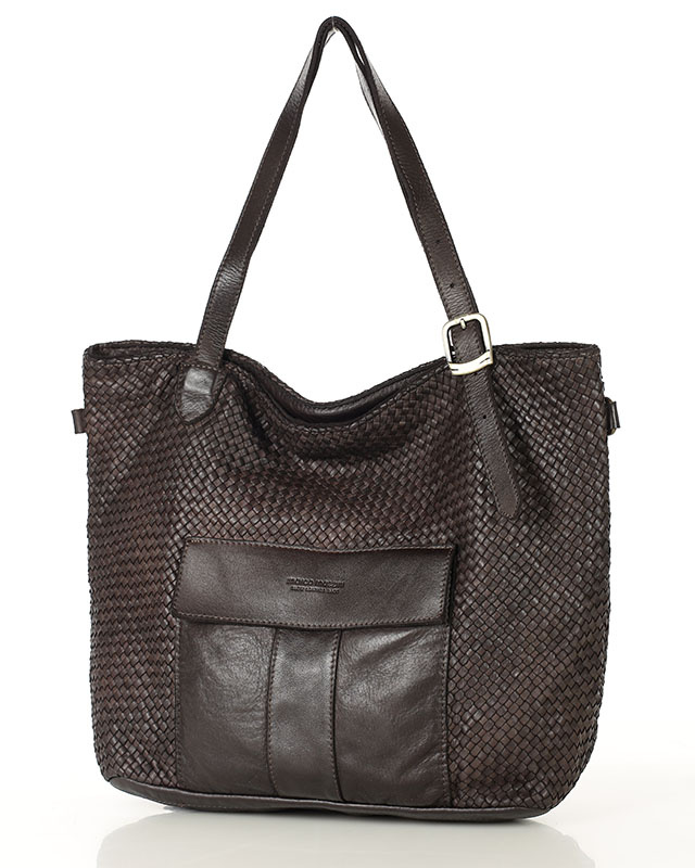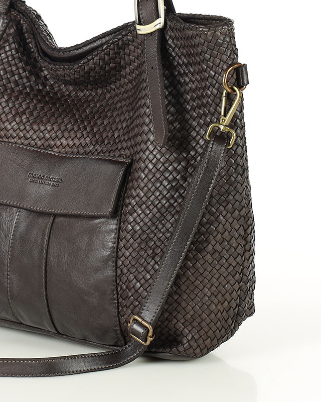 Duża torebka pleciona na ramię shopperka skórzana - MARCO MAZZINI ciemny brąz