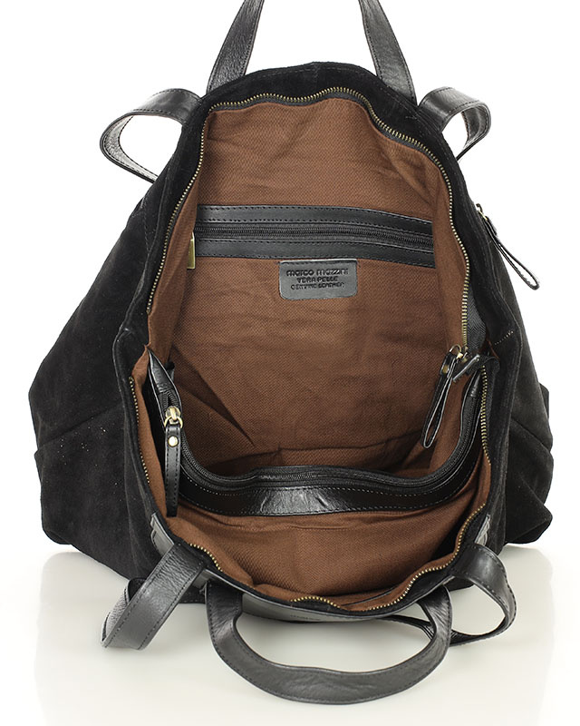 Duża torba zamszowa skórzana podwójne rączki - MARCO MAZZINI czarna