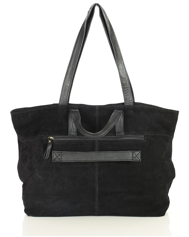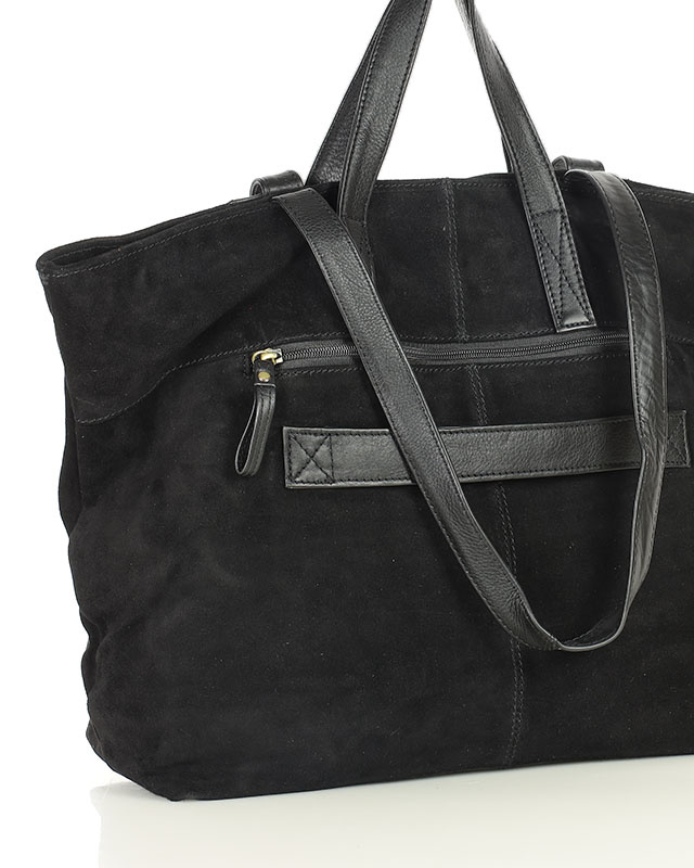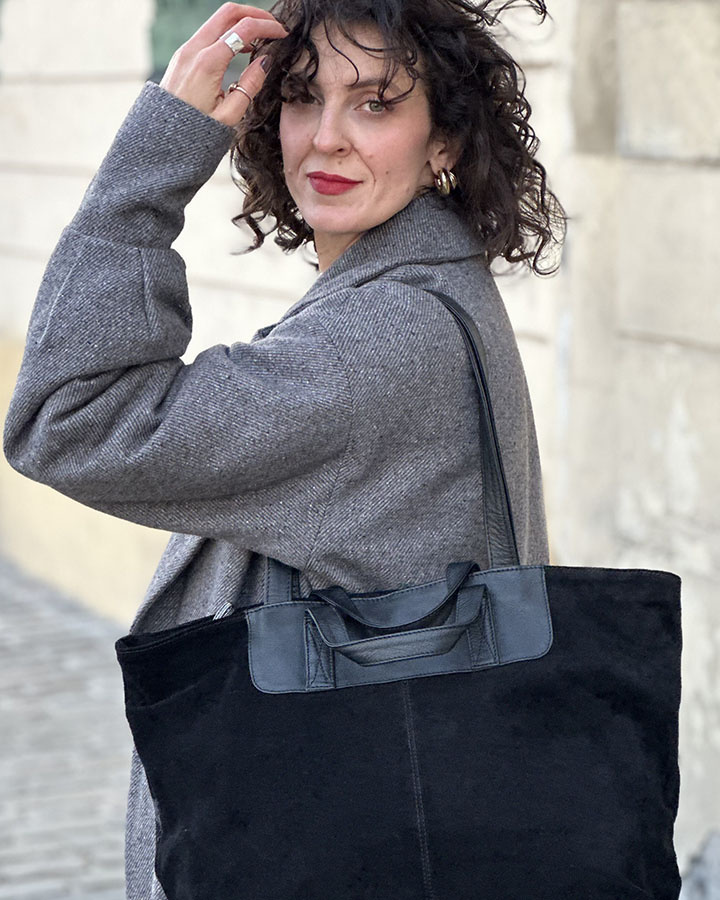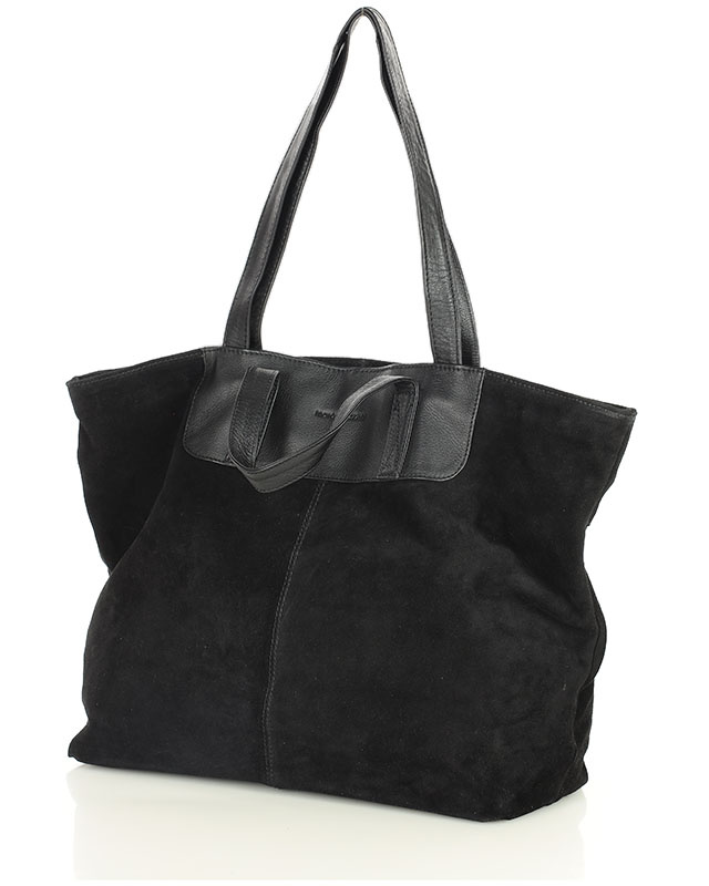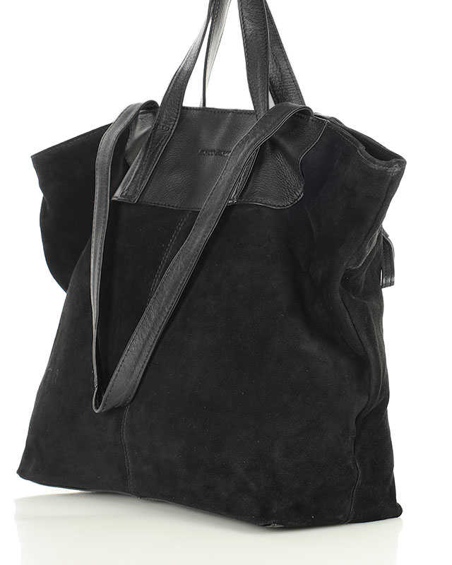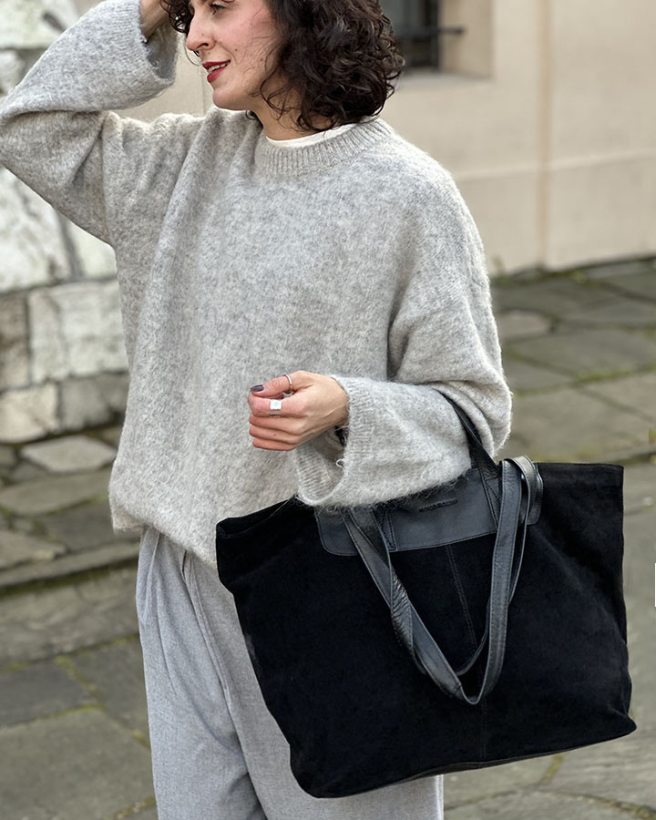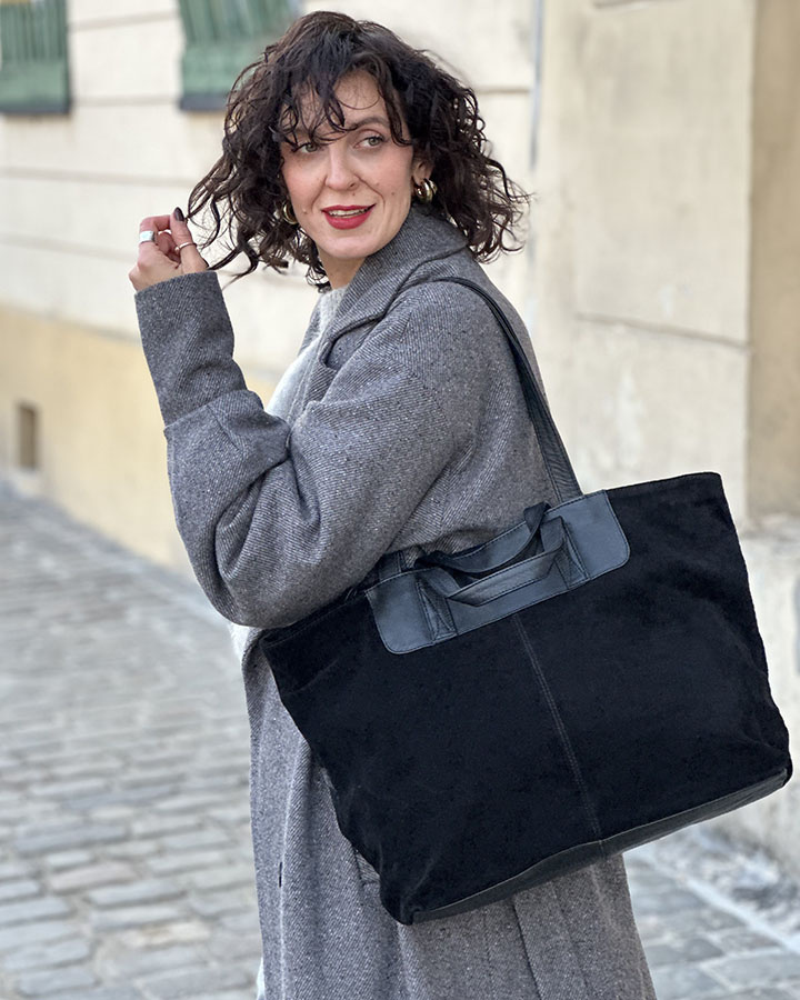 Zamszowa torba shopper – Czarna torebka do pracy!