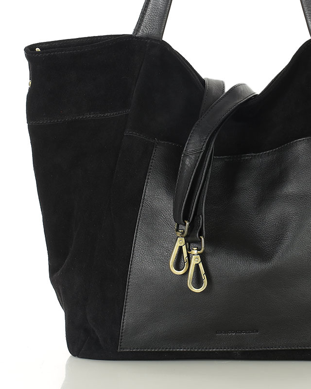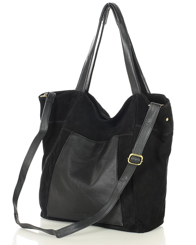 Duża torba zamszowa shopper skórzany z kieszenią - MARCO MAZZINI czarny