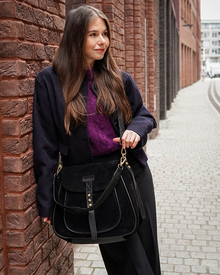 Czarna zamszowa torebka saddle bag – Klasyka w miękkiej, zmysłowej odsłonie