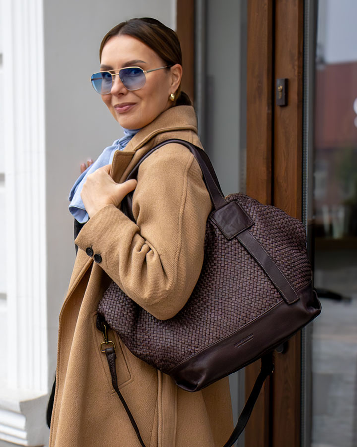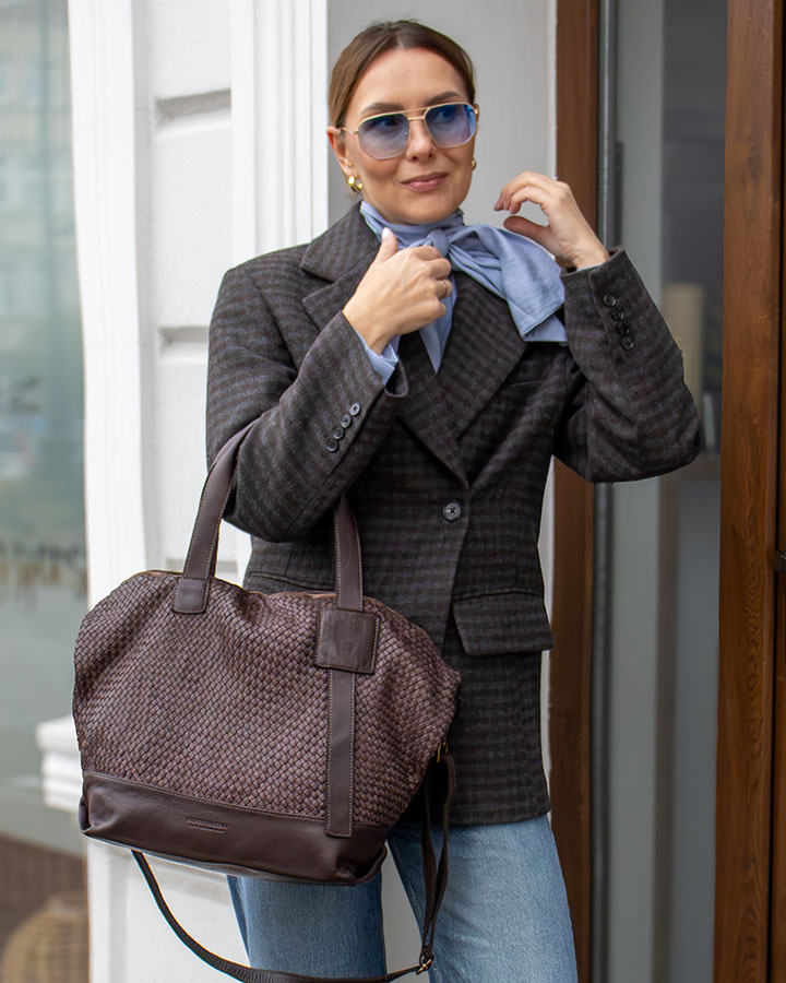 Duża torba shopper z plecionej skóry naturalnej – Funkcjonalność na co dzień