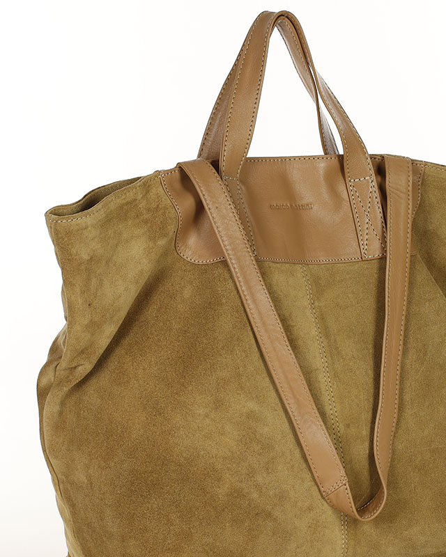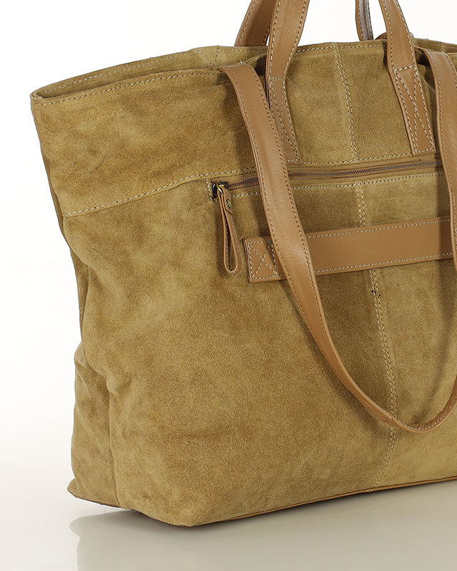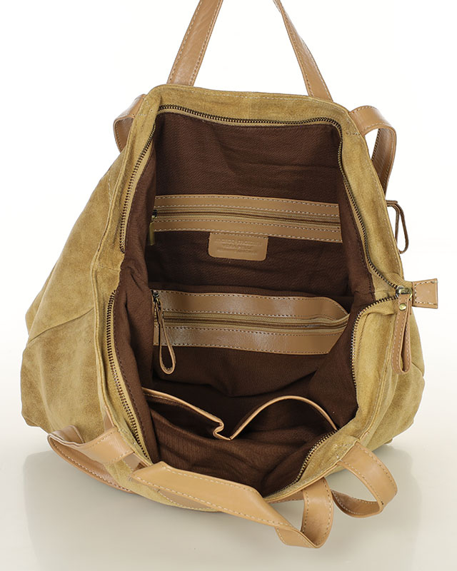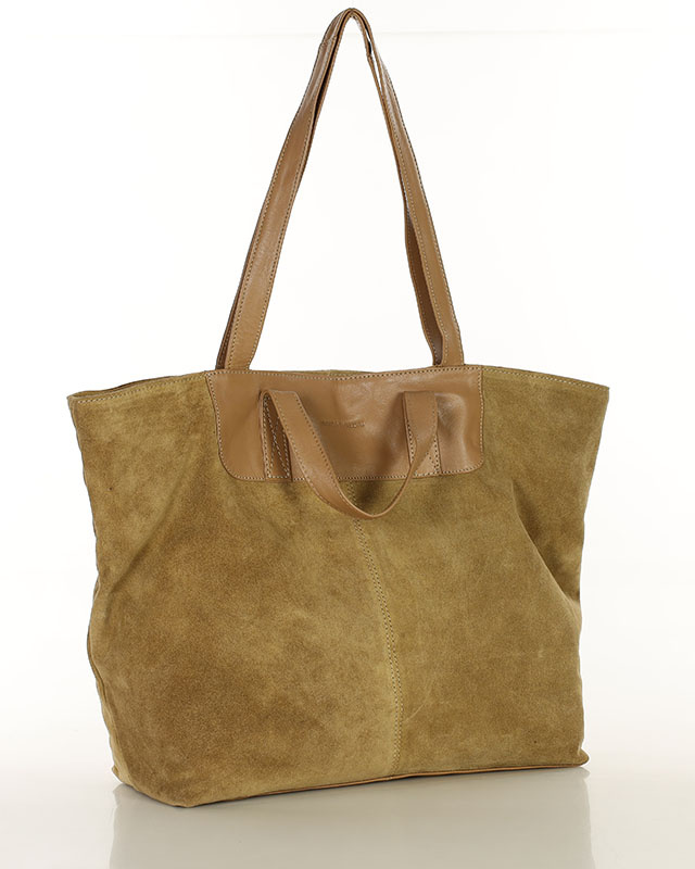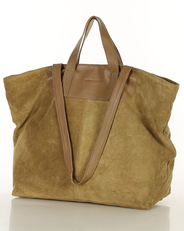 Duża torba zamszowa skórzana podwójne rączki - MARCO MAZZINI beżowa
