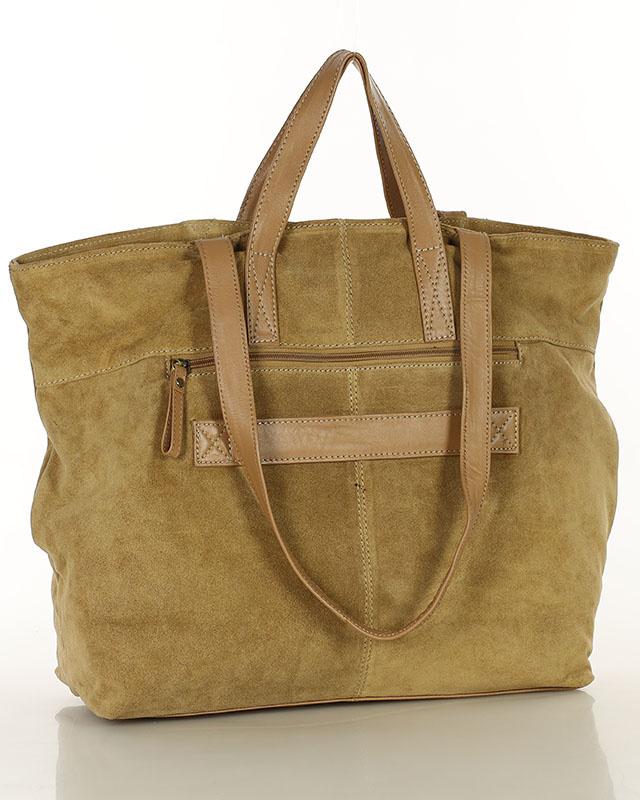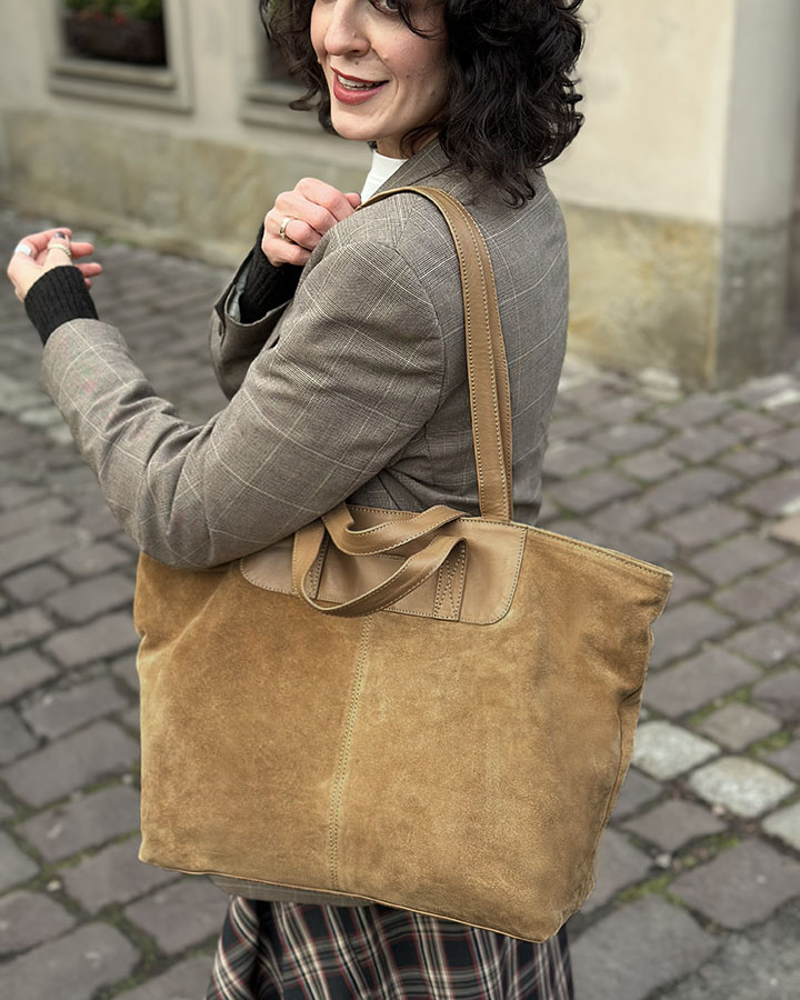 • Duża torebka zamszowa vintage ze skóry z dwiema rączkami
