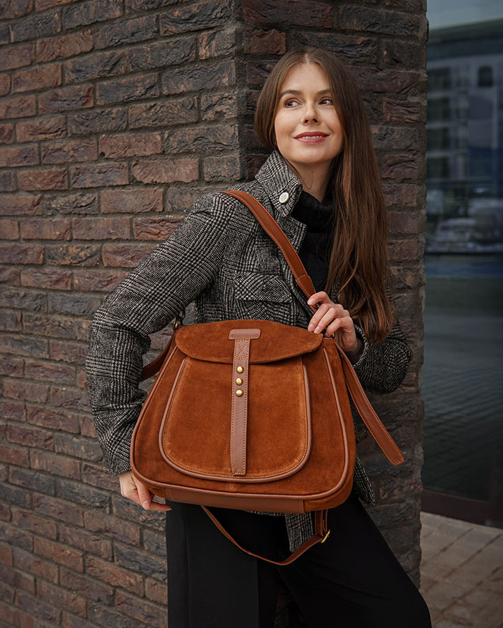 Zamszowa torebka saddle bag dzięki swojej średniej wielkości i dwóm dopinanym paskom to idealny wybór dla Kobiet ceniących styl, wygodę i naturalne materiały. Jej ponadczasowy fason sprawdzi się zarówno w pracy, jak i podczas spotkań towarzyskich.