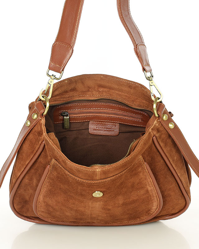 Torebka zamszowa saddle bag skórzana na ramię - MARCO MAZZINI brąz camel