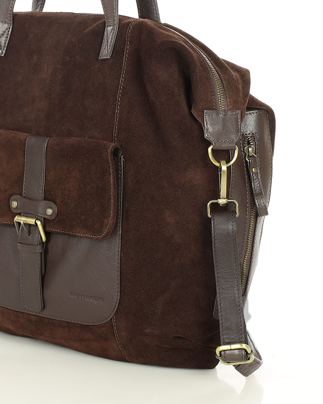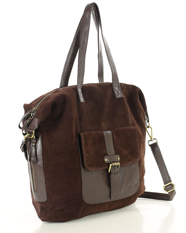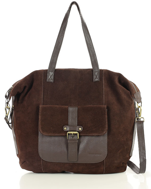 Duża ciemnobrązowa shopperka zamszowa skórzana z kieszenią – MARCO MAZZINI