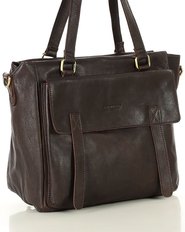 Torba skórzana shopper biznesowy z przegrodą - MARCO MAZZINI ciemny brąz