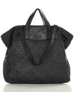 Torba damska pleciona shopper & shoulder leather bag - MARCO MAZZINI czarna