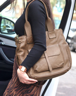 Torebka skórzany shopper bag z kieszeniami - MARCO MAZZINI Ravenna brąz camel
